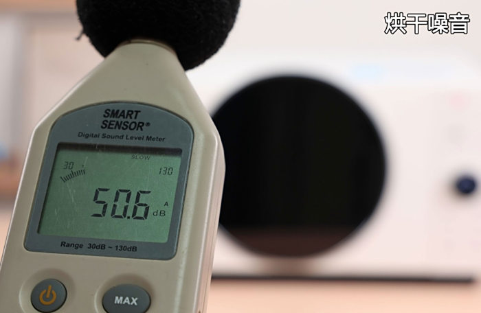 烘干是一个时间比较长的过程,因此我们测试了过程中的噪音,以及耗电量。在距离微波炉一米处测得噪音是大约50分贝,这是可以算安静的数值。