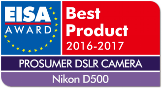 尼康公司荣幸地宣布,尼康DX格式数码单反相机D500荣获欧洲影音协会(EISA)颁发的“2016-2017欧洲消费级数码单反相机”大奖。这是D500今年第三次荣获大奖,它还获得了由影像技术新闻协会(TIPA)授予的2016年度“最佳专业APS-C数码单反照相机大奖”,以及德国设计协会Design Zentrum Nordrhein Westfalen颁发的“红点奖:2016产品设计奖”。