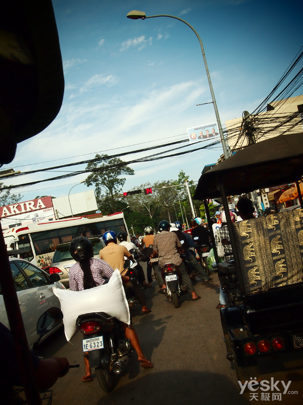 当然,对于包括我们在内的绝大多数旅行者,来到暹粒首选的交通工具还是TUKTUK车。柬埔寨同越南、泰国等东南亚国家一样,摩托车是主要的交通工具。TUKTUK车小巧轻便、经济实惠,可以在拥挤的道路中穿行,虽然有翻车的危险还是可以无障碍的观看四周景色,这样的感受还是非常奇妙的。