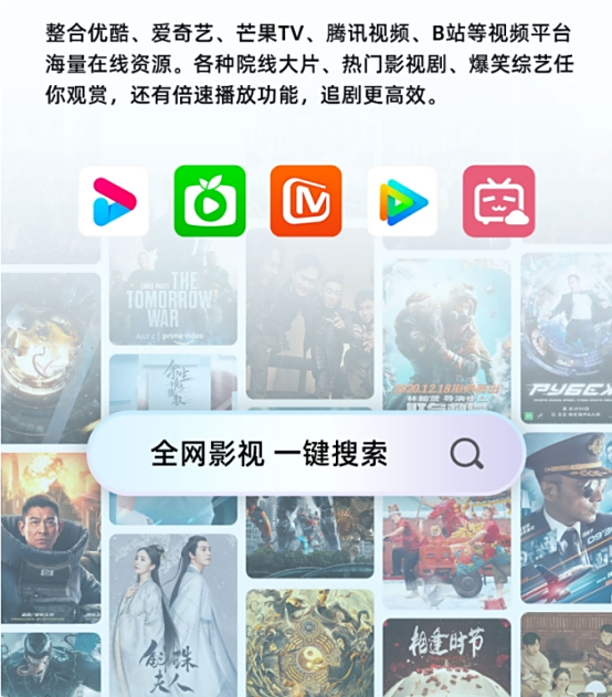 当贝OS系统还内置了电视剧、电影、综艺、芒果TV、动漫等众多栏目,并通过定期整理、收录当前线上热门资源,布置在每个分区首位,供用户快速触及优质内容,享受轻松惬意的观影观剧体验。