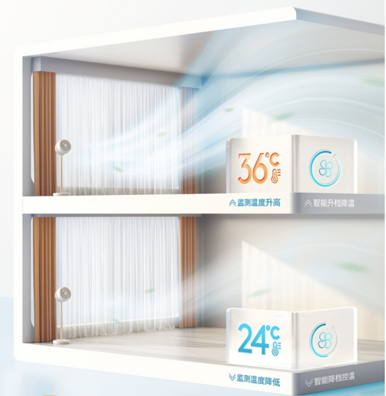 在循环室内空气的基础上,斗禾伸缩循环扇XHD03还拥有智能风模式,通过内置的智能感温芯片,能够感应到环境温度的变化,自动调整1-4档风速,不再担心因昼夜温差过大而导致着凉的问题。