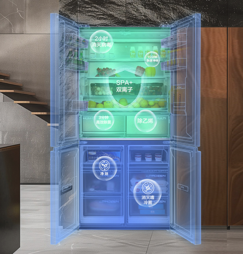 此外,海信璀璨565真空头等舱全嵌冰箱还配备了全空间离子除菌净味系统,24小时不间断工作,有效杀灭细菌,去除异味,为我们提供了一个纯净、健康的储鲜空间。这一科技的应用,不仅保障了食材的卫生安全,更提升了家居生活的品质与健康水平。