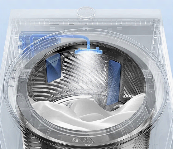 洗衣液是洗衣机工作中的另一个重要环节,TCL超级筒洗衣机T7H Pro配备的全新超净泡精华洗技术,在进水链路中产生大量微气泡,并融入洗衣液的智能投放、速溶预混工作中,实现洗衣有效成分的均匀混合、快速激活,再借助内筒花洒式强压直喷快速深层浸润衣物。既能实现精准投放、减少残留,还能节省注水时间,进一步提升洗衣效率、增强洗净效果。