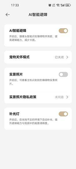 追觅X40 Pro Ultra的APP基本可以解决各种设置需求,譬如宠物关怀模式默认是关闭的,用户可以根据实际情况开启,如果怕刺眼还可以关闭补光灯,非常人性化。