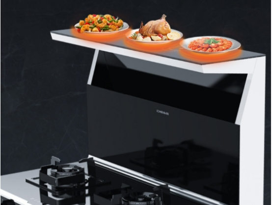 在其他功能方面,德意蒸烤一体集成灶90DT拥有电热高温清洁功能,在烟机累计使用120H后会自动提示清洁,通过75°C高温融化油污并高速甩离,快速清洁延长烟机寿命。在德意蒸烤一体集成灶90DT的顶部则拥有70°C恒温置物台,解冻、保温、加温、存香等需求都能实现。