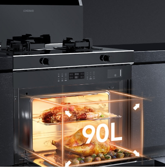 在蒸烤功能上,德意蒸烤一体集成灶90DT拥有90L超大蒸烤空间,内置8大蒸烤模式以及30多个菜单,选择菜单即可进入烹饪程序,机器将能自动配比火候、温度、热曲线、时间等参数,烹饪变得如此简单。