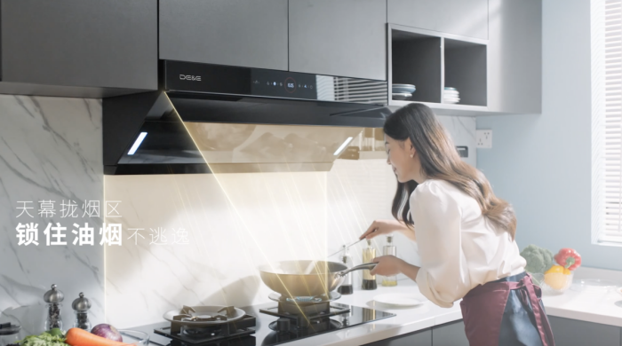 另外,德意A6Pro有延时关机功能,灶具关闭后,油烟机会继续排烟三分钟,把残余油烟清除干净,然后自动关闭。