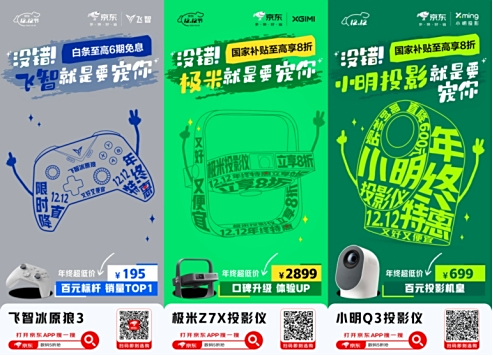 游戏爱好者们注意了,飞智冰原狼3限时直降,至高6期免息,百元标杆销量TOP1的它,绝对是你畅享游戏世界的好伙伴。想要在家就能享受影院般的观影体验?极米Z7X投影仪京东12.12立享8折,年终超低价2899元;小明Q3投影仪则是百元投影机皇,国家补贴至高享8折,年终超低价699元,让你轻松拥有私人影院。