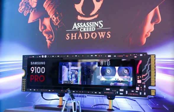 为满足游戏玩家的收藏需求,三星还与《刺客信条:影》合作推出了三星 SSD 9100 PRO x 刺客信条联名定制礼盒,内含9100 PRO固态硬盘4TB版本及游戏周边产品,现场和电商平台同步发售,吸引了大量粉丝关注。