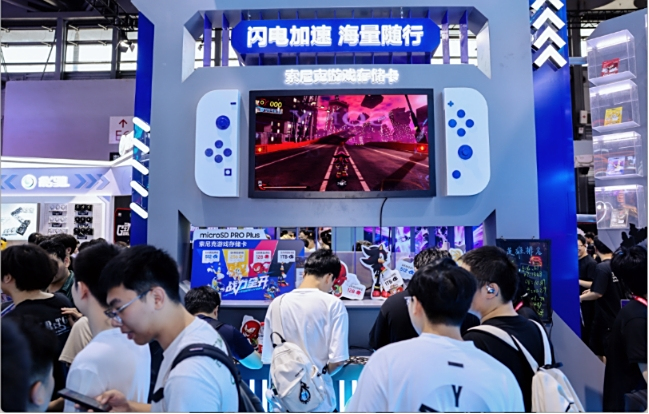 "无界BUFF"体验区为现场玩家展示microSD PRO Plus索尼克游戏存储卡在Switch游戏机上的表现,这款microSD卡不仅外观时尚,而且性能强悍,在Switch游戏机上读写丝滑。该区域还设置了《索尼克x夏特:世代重启》闯关挑战赛,现场的玩家跃跃欲试,每日前五名均获得了这款存储卡大奖。