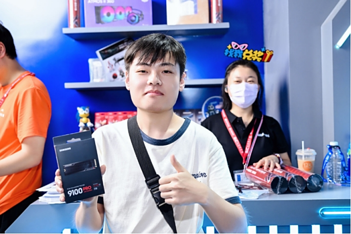 而最让人激动的,就是现场玩家可领取集章任务扇,完成所有关卡集章后参与幸运扭蛋抽奖,100%中奖率吸引了玩家排队参与,幸运玩家更是抱走了三星9100 PRO固态硬盘1TB、酷冷至尊散热器、酷冷至尊电源等重磅大奖。