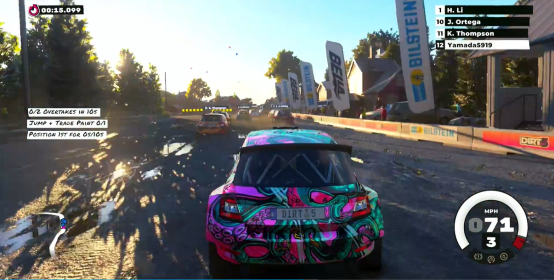 赛车竞速类游戏也是很多玩家最喜欢的游戏类型之一,例如《尘埃5》和《极限竞速:地平线5》等游戏,玩家可以凭借A770 FLUX模拟驾驶自己的坐骑疾驰在不同的跑道上,感受飙速的快感。有了新驱动的加持,主打的越野赛风格《尘埃5》在超高画质下提高了8%的性能,配合上泥沙风雪或者冰风雷暴带来更爽快的操作感,在驾驶过程中车轮卷起的泥土或是碰撞时车身的损坏细节也带来了更真实的竞速体验。再看更为开放世界的《极限竞速:地平线5》在1080P极限画质和2K分辨下都有3%的提高,玩家可以通过A770 FLUX感受不同季节不同赛道的玩法,感受震撼的竞速感赛车。