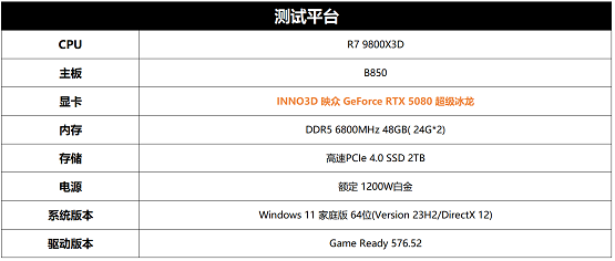 测试平台如上图所示,用上9800X3D和RTX 5080 超级冰龙也是对「虚幻5」的“尊重”。