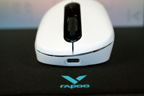 鼠标尾部有一个内凹抛光的雷柏LOGO。