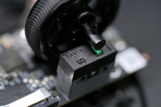 滚轮使用电竞型一百万次刻度滚轮,编码器采用凯华GE2.0,滚轮中键使用华诺绿点。
