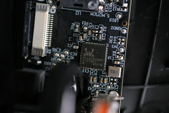 将电池和泡棉胶从PCB底板取下,可以看到原相3950 Ultimate光学引擎,主控采用瑞昱RTL8762GKH芯片,在低功耗的同时保证鼠标超高速连接和稳定的表现。