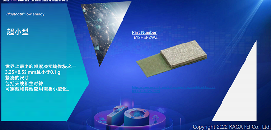 在业内拥有高知名度的加贺富仪艾电子分享了让业界兴奋的无线(蓝牙及Wireless Lan)模块解决方案,不仅有体积达到了世界最小之一能满足可穿戴以及其他小型设备需求的产品,也有传输距离达到1km或以上的远程型产品,在关键的功耗方面还能实现智能化管理确保更高的效率。