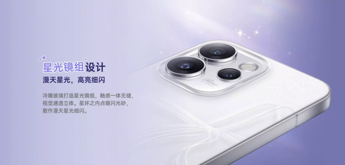 在外观方面,它首发的「星光蝴蝶结」配色采用行业首创的全息光刻工艺,通过在玻璃背板上精雕立体纹理,实现了裸眼3D的视觉效果。远看时银色边缘闪烁如点点星光,近看则能清晰看到蝴蝶结丝带的层次与细腻纹理。随着光线变化,丝带仿佛在背板上轻盈舞动,使整机在外观上极具辨识度与艺术气质。