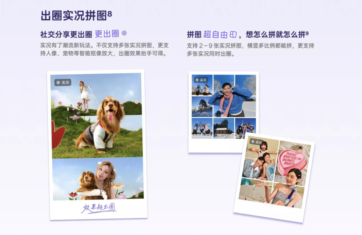 影像方面,Reno15标准版带来了同档罕见的旗舰级三主摄组合,包括2亿像素1/1.56英寸大底主摄、5000万像素超广角以及5000万像素85mm长焦镜头,从日常街拍到旅行风景再到人像特写,都能胜任。更重要的是,本次新增的“出圈实况拼图”功能大幅提升了画面的表达力,它通过放大人物肢体动作,让原本平面的照片拥有冲破画面的张力与动感。用户只需选择多张实况素材,点击拼图并挑选模板,再放大需要强调的主体,就能轻松完成。