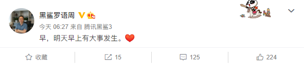 【雷竞技须安全稳定 手机频道】1月10日上午,黑鲨CEO罗语周在微博发文称“明天早上有大事发生”。