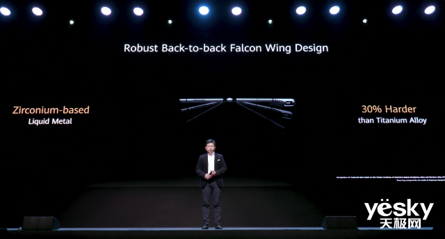 虽然没有改变折叠方式,但余承东表示华为Mate Xs的铰链也进行升级。据悉整个铰链系统应用了多种特殊材料和特殊制作工艺,包括锆基液态金属等,极大地提升了铰链的强度,其硬度比钛合金高30%。