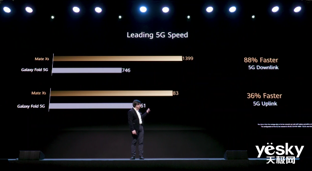 折叠屏手机既然是面向未来的前沿科技潮品,那么体验自然也要向“顶级”看齐,前不久三星发布的Galaxy Z Flip为数不多的槽点便包括不支持5G。据华为介绍,华为Mate Xs支持5G+4G双卡双待,覆盖8个5G频段。在5G上下行速度方面,华为Mate Xs对比三星Galaxy Fold 5G下载速度快了88%,上传速度快了36%。此外,虽然升级了新一代旗舰芯片且电池容量没有变化(仍旧为4500mAh),但通过华为重度用户续航模型测试,华为Mate Xs在5G网络下续航时间较华为Mate X提升了17%,因此可以支持更长时间的5G体验。