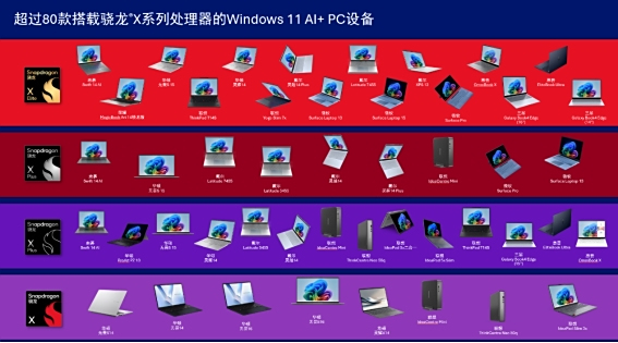 目前,已有超过80款搭载骁龙X系列平台的设备发布或者正在开发中,预计到2026年将超过100款。
