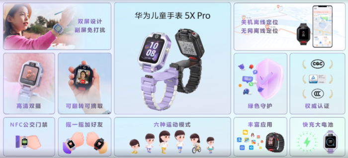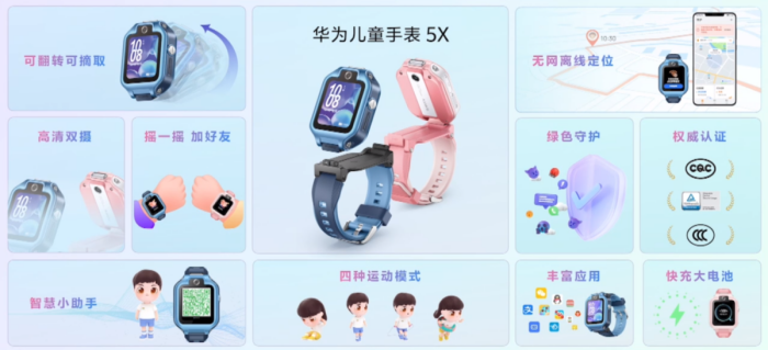 华为儿童手表5X系列:可翻转可摘取双面屏设计,多方位守护孩子
