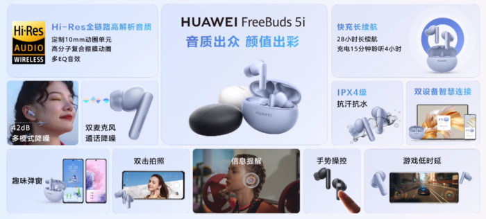 HUAWEI FreeBuds 5i:Hi-Res小金标认证,多模式降噪