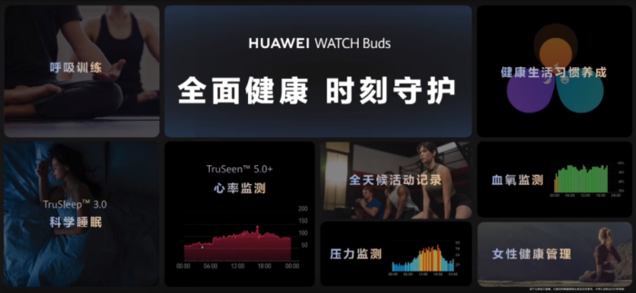 此外,华为WATCH Buds同样延续了华为穿戴在运动健康领域的优秀基因,支持血氧饱和度自动检测、TruSeen™ 5.0+心率监测以及TruSleep™3.0睡眠监测等多项健康监测功能(TruSleep 3.0功能后续将通过OTA升级推送支持)。华为加入由301医院发起的心脏健康研究和睡眠呼吸暂停研究,配合华为WATCH Buds,可精细化分类筛查房颤、室早及房早等心律失常风险,可智能识别睡眠、HRV、血氧、心率等信息,筛查睡眠呼吸暂停风险。