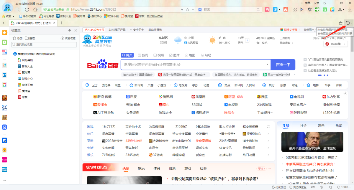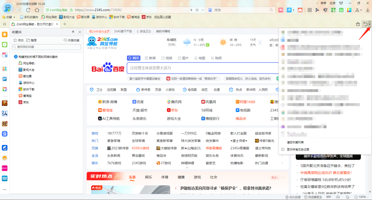 2345加速浏览器网页意外关闭怎么恢复