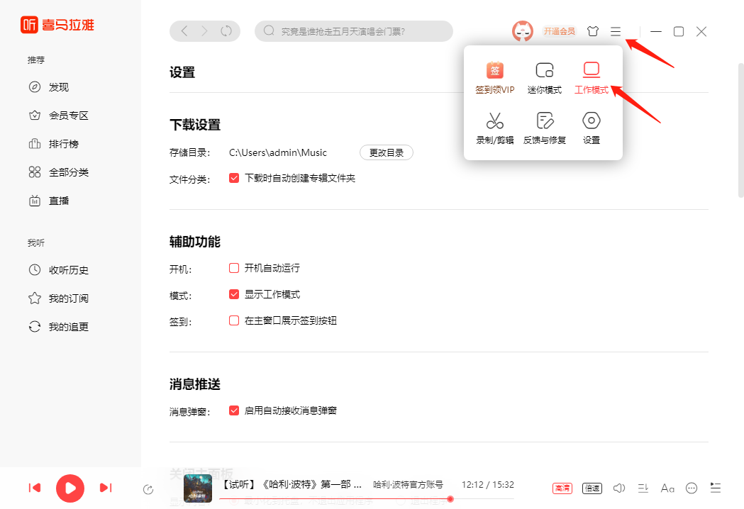 喜马拉雅怎么开启工作模式