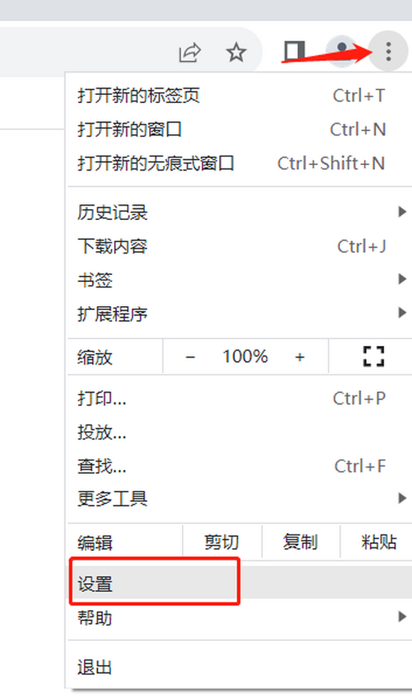 1、首先我们需要把谷歌浏览器的语言调整为英文,在浏览器主界面的右上角找到设置选项。