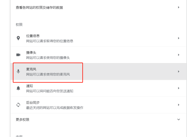 5、然后找到麦克风的选项,点击开启麦克风权限。