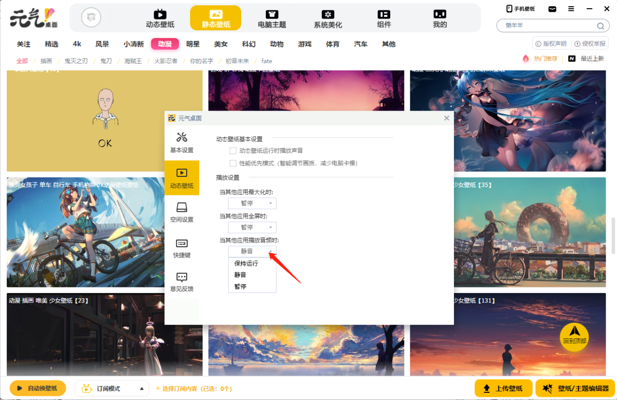 元气桌面壁纸是一款桌面壁纸美化工具,提供了超多高清无水印动静态壁纸,以及海量超清4K动态壁纸,内置游戏渲染引擎,让动态壁纸效果栩栩如真,打造桌面壁纸的绝美盛宴。但是很多朋友在设置动态壁纸后,发现动态壁纸是有背景音乐的,但是在办公室中会影响到其他人,我们可以将动态壁纸声音关掉哦,接下来小编就教大家怎么关闭动态壁纸的声音吧。