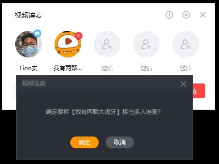 可以在视频连麦的下图中看到,主界面是由连麦布局区和头像邀请区共同组成的,现在虎牙直播平台的一场连麦可以最多让5个主播同时参与,包括主播自己。