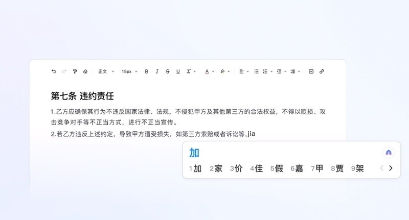 百度输入法独有的专业词条输入服务可以给法务、律师等工作者提供预测专业词条的服务,帮助其工作效率提高,节省更多的时间。
