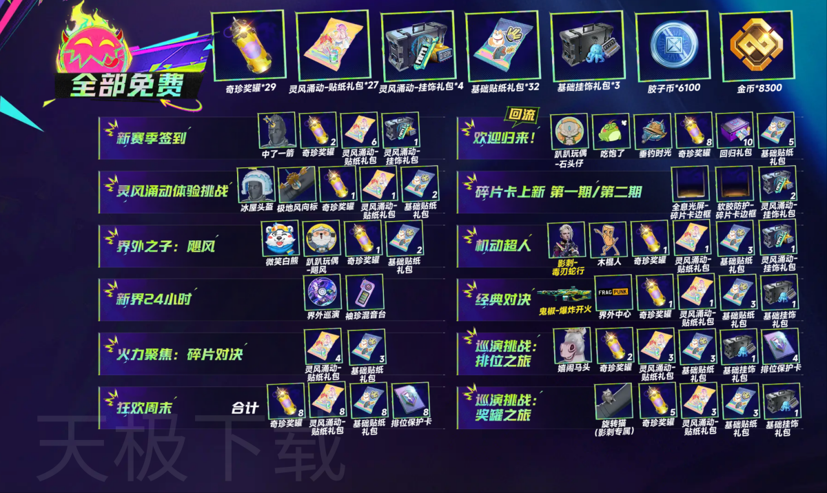 界外狂潮S2赛季的福利活动包括:购买高级通行证可解锁典藏皮肤、点券返还等奖励,终极版额外提供换色皮肤和经验加成。参与排位赛提升段位可获得限定奖励。完成新界外之子活跃活动可解锁车队专属挂坠等。使用兑换码(如jwkc666)可领取点券、抽奖机会及贴纸包。观看直播可获取箱子、饺子币等奖励。此外,通行证满级后可兑换代币,免费版玩家也能获得溢出奖励。