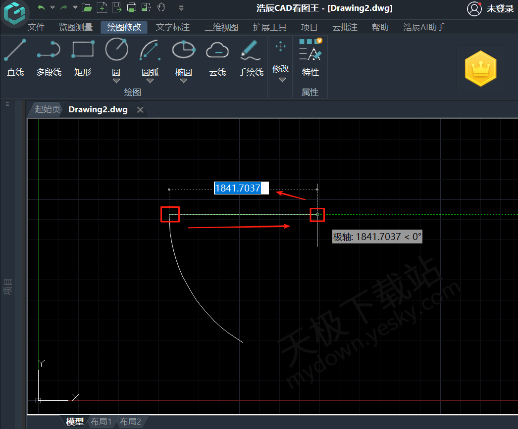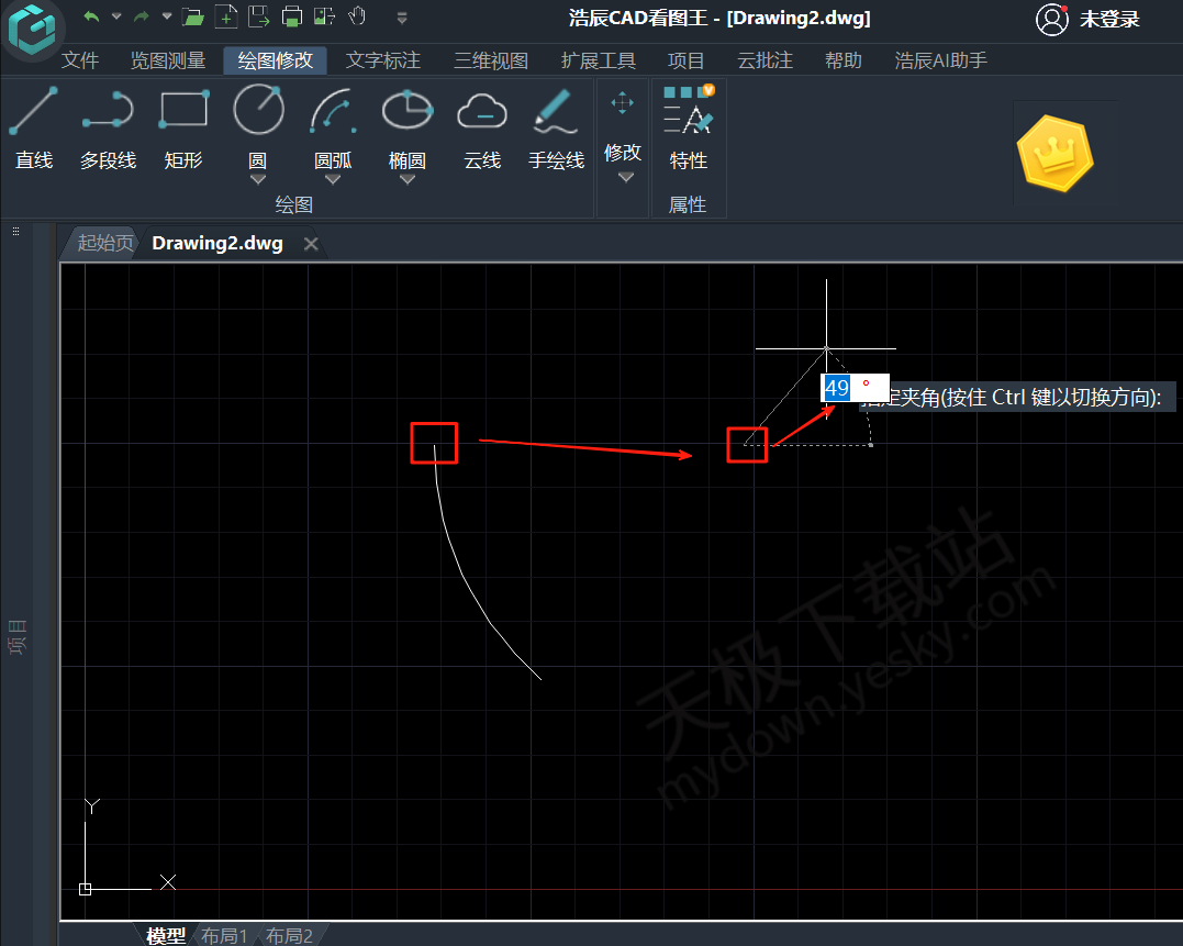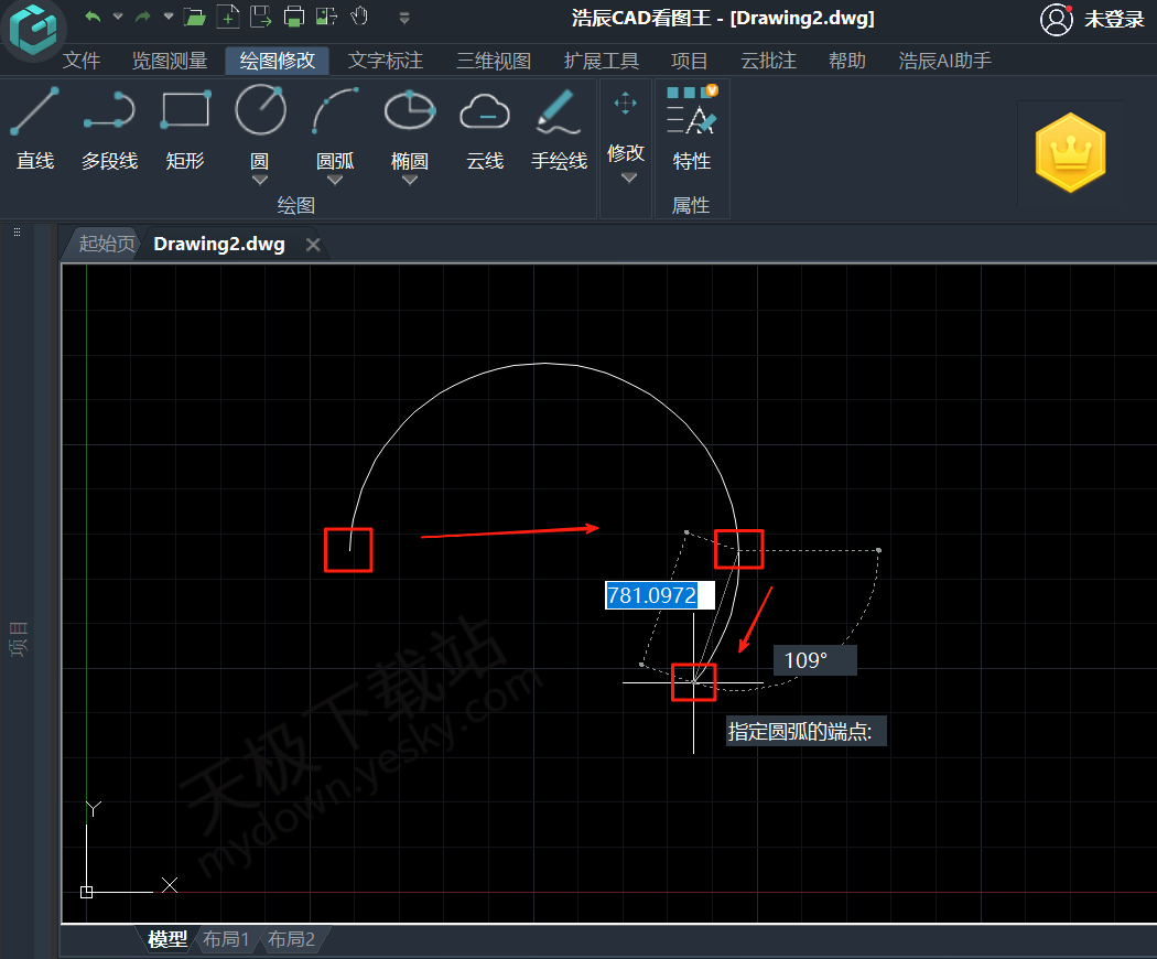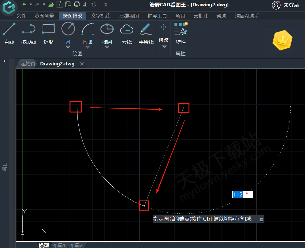 浩辰CAD看图王PC版圆弧绘制操作指南