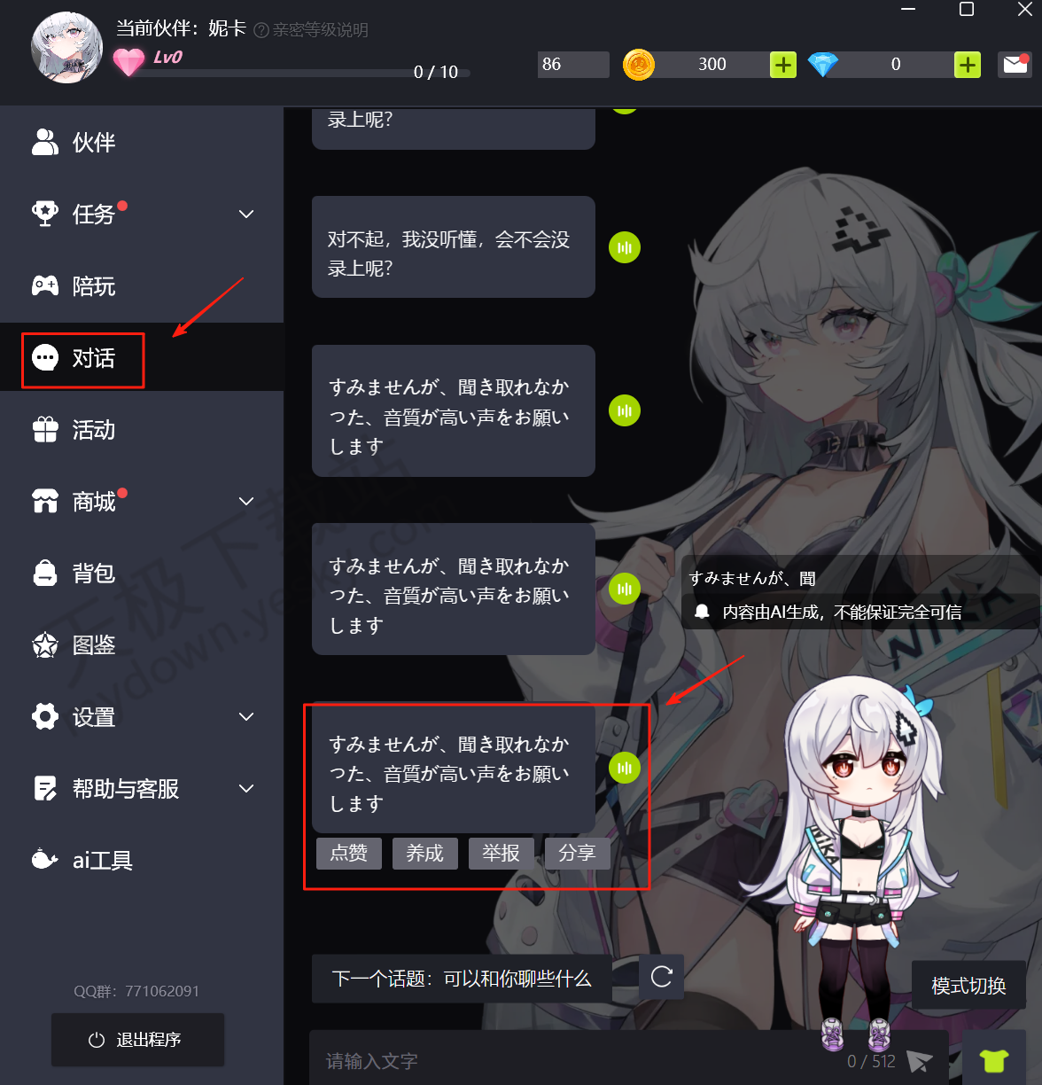 2.完成设置后,重新与游戏伙伴进行语音对话,你就会发现伙伴的输出语音已经切换成日语啦。