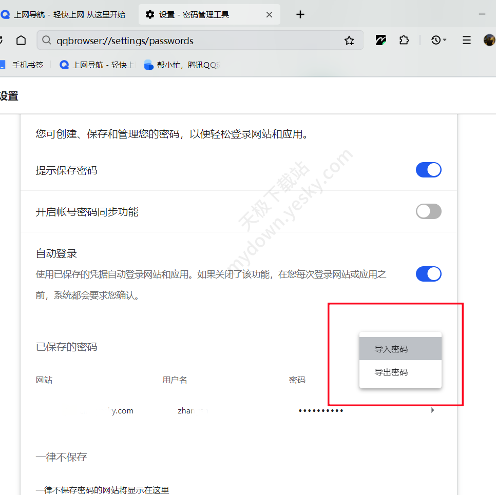 QQ浏览器的密码管理是一项十分实用的工具,目的是保存用户授权后的网站的账号和密码,以加密的形式存储于本地,用户再次访问网站时即可快速填写账号密码,省去了手动输入的步骤也避免了密码忘记的困扰。