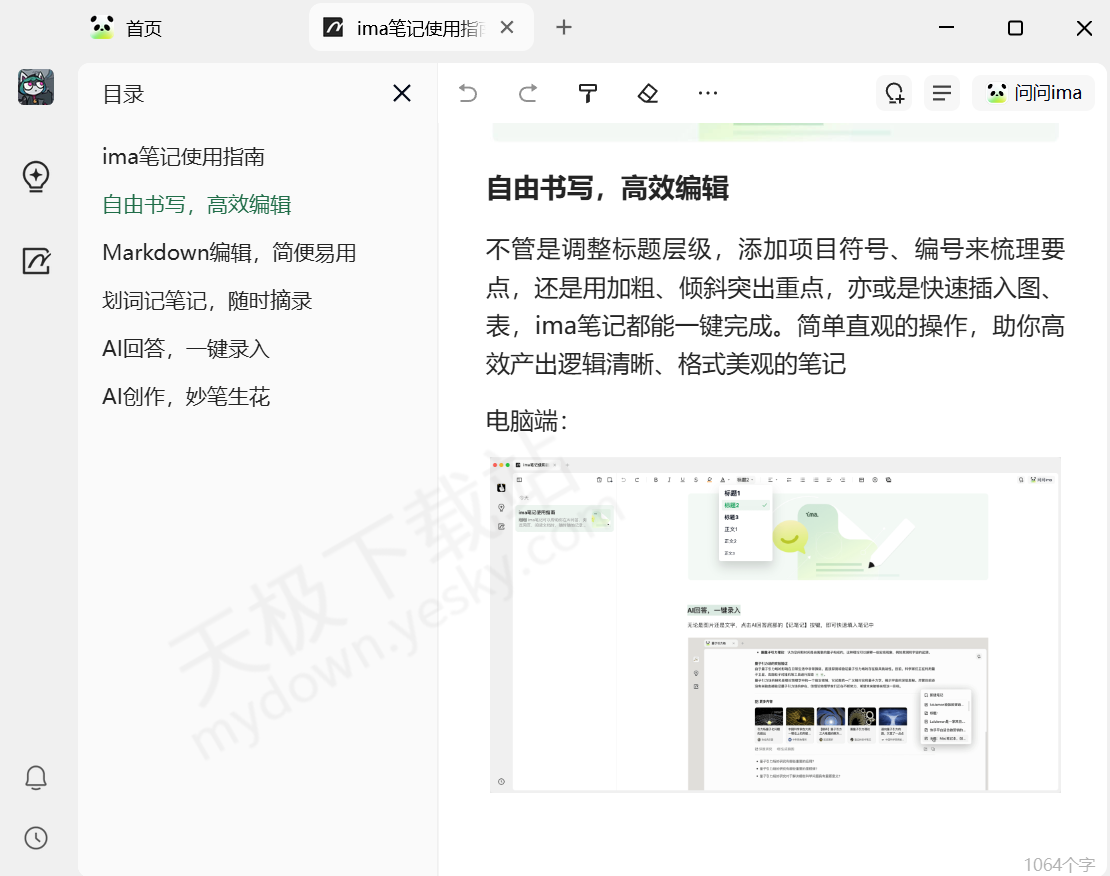 6.AI笔记:可直接将AI生成的内容进行记录,自动梳理笔记逻辑结构,后续查看更加方便。