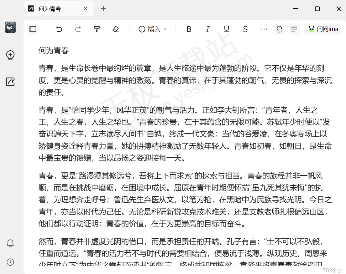 2.AI写作:支持生成多种类型的文本内容,包括营销文案、工作报告、学术提纲、创意故事等,可根据用户设定的风格和字数要求快速产出文案。