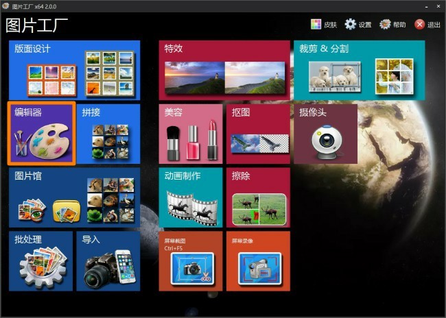 第一步,先打开图片工厂软件,在左侧页面的中间位置,点击选择【编辑器】。