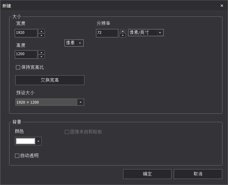 第三步,设置新建的工作参数,分辨率、亮度、背景颜色等。