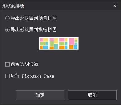 第七步,点击【文件】下面的【导出】并选则【形状到模板】,然后勾选【导出形状层到模板拼图】,点击【确定】。