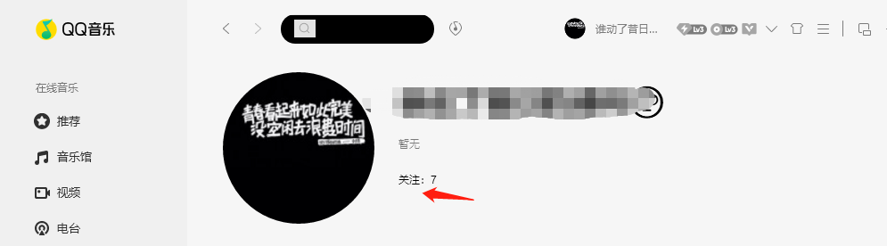 首先打开QQ音乐,并进行登录个人的账号密码,然后点击个人的头像,进入后点击所关注的,接着会看到有一个用户,然后点击它,进来之后就可以看到好友的歌单了;