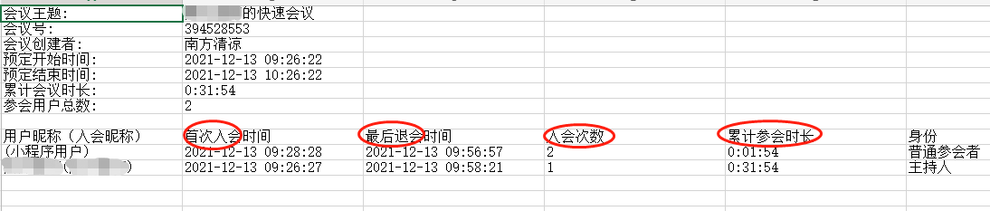 在讲解流程前,小编需要解释一下,只有当我们是会议的主持人时,才能导出该场会议的成员名单,否则是没有记录的,这也许是一定程度上对所有参会成员的保护。