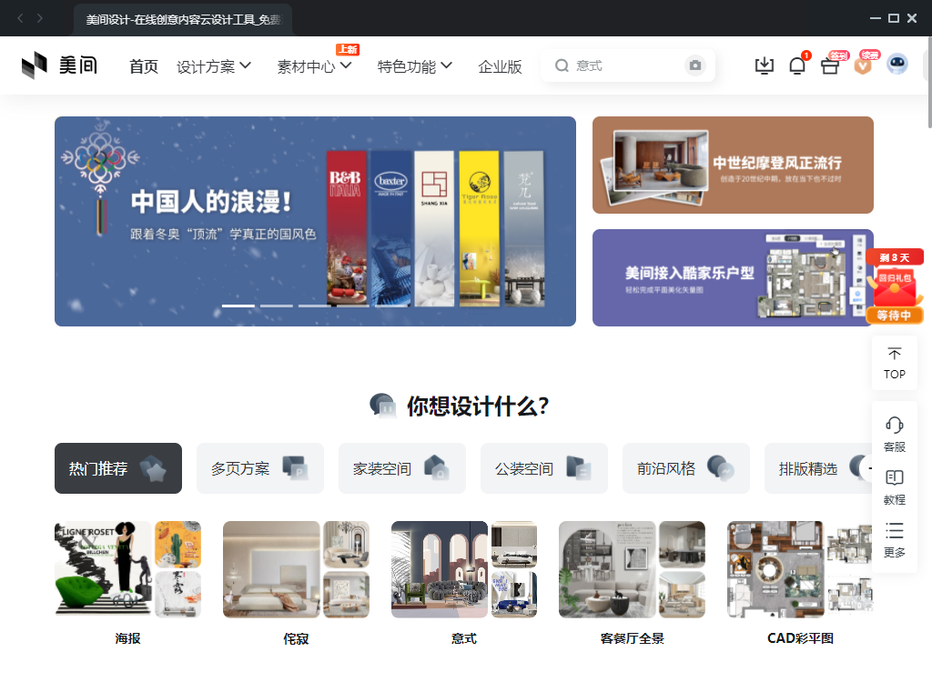2、电脑端上,更大的屏幕,从而让用户在进行设计操作时更加方便,在遇到细微调整环节时可以从容进行调整。