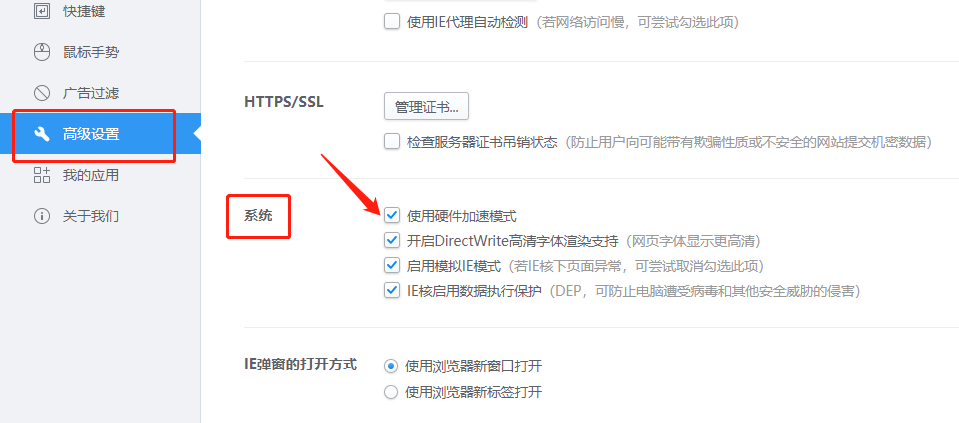 第一种方法就是开启硬件加速器,首先如果在无响应界面当中,需要先关掉此页面或者浏览器,然后重新打开,点击右上角三条横杠的图标,紧接着点击设置,进入设置界面后,在左侧一栏点击高级设置,然后在系统这一栏勾选使用硬核加速器模式,